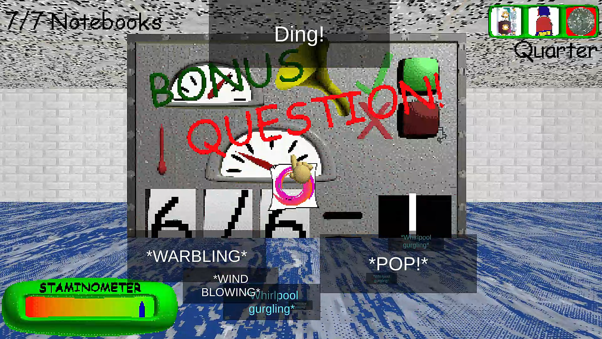 The item's usage was first briefly teased from the Baldi's Basics Plus early access trailer,[1] and its usage was later teased on Twitter.[2]